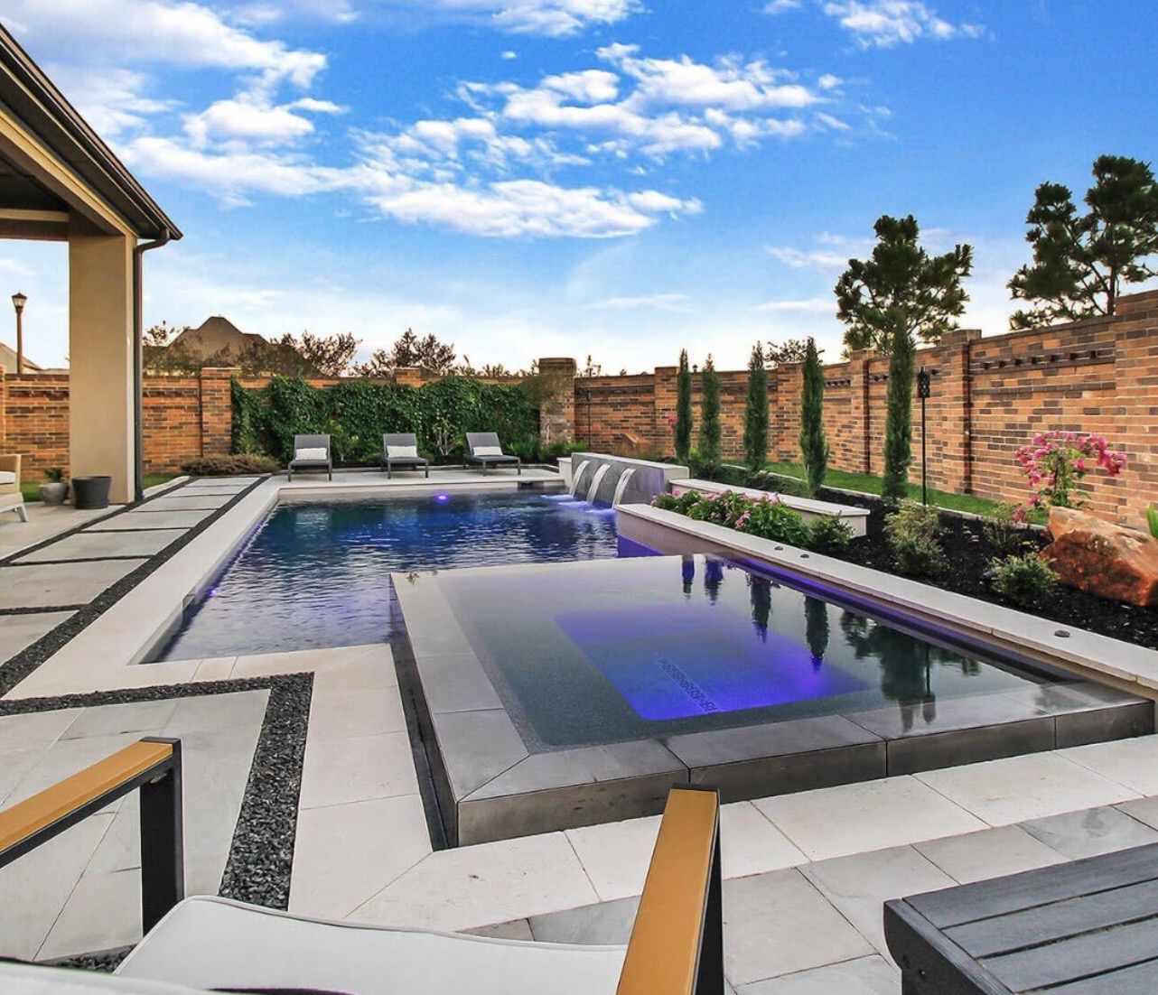 Our team will prep the site, start excavation, rebar, plumbing, electrical, and finally tile and pool interior finish. We bring in final steps by placing coping and decking of your choice. Our goal on each custom pool is to create a masterpiece.